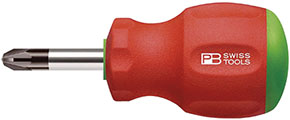 Per viti con impronta a croce POZIDRIV. Lama corta. Impugnatura corta bicomponente SwissGrip.